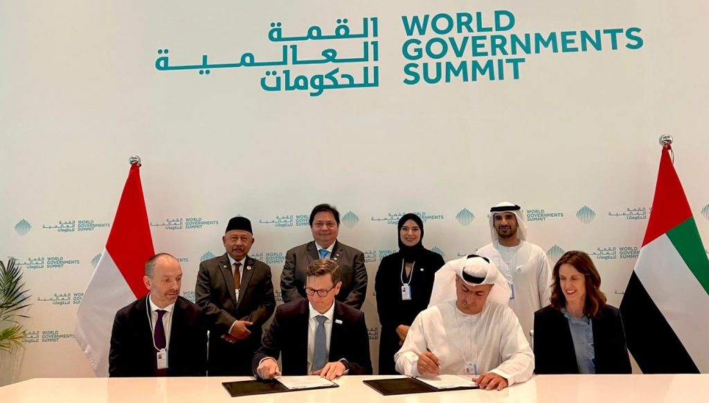 DUBAI – Menteri Koordinator Bidang Perekonomian Airlangga Hartarto menyaksikan penandatanganan Perjanjian Pendanaan Proyek Pengelolaan Sampah antara Clean Rivers dan Project STOP di Dubai, Uni Emirat Arab (UEA) pada Rabu, 12 Februari 2025.