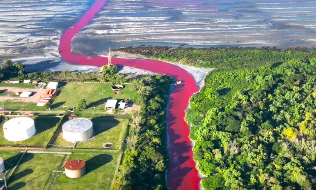 BUENO AIRES – Warga di Argentina digegerkan dengan air sungai yang mengalir ke daerah padat penduduk di pinggir Buenos Aires berubah warna menjadi merah darah. Hal ini diduga akibat air sungai tercemar limbah industri.