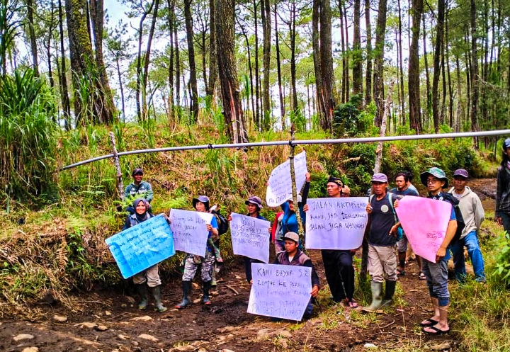 Muak dengan jalan rusak dan pipa air bersih yang kerap pecah akibat aktivitas offroad, warga RT 03 RW 12 resmi menutup jalur yang melintasi kawasan pertanian dan hutan penyangga.