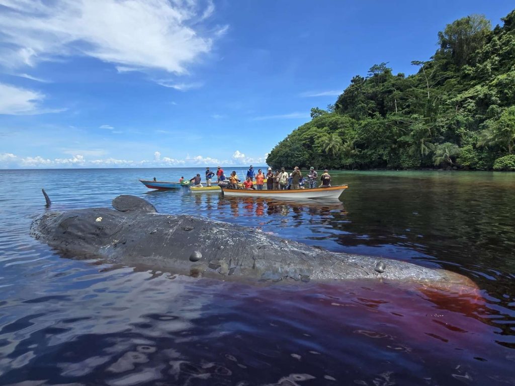 SERUI – Kematian mamalia laut dilindungi kembali terjadi. Kali ini, ikan Paus jenis sperm whale berukuran raksasa ditemukan mati terdampar di Perairan Kepulauan Ambai, tepatnya di Kampung Kawipi.