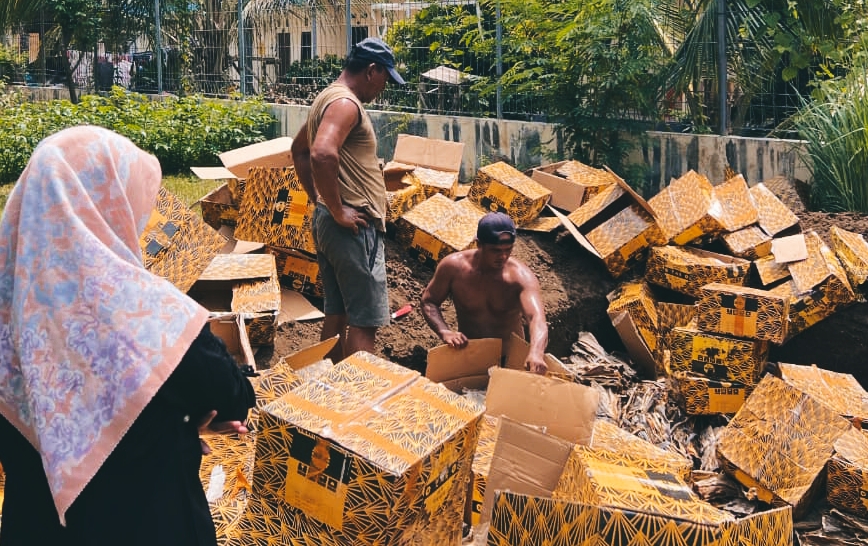 Untuk memastikan barang bukti tidak kembali dimanfaatkan, ratusan kilogram kulit hiu dan pari ilegal tersebut dimusnahkan melalui metode penguburan.