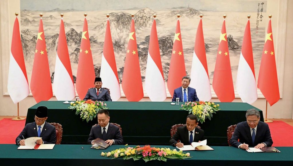 Disaksikan Presiden Prabowo dan Presiden China Xi Jinping, Menteri Bahlil Lahadalia menandatangani MoU Kerjasama Mineral Hijau dengan Wang Wentao, Menteri Perdagangan (MOFCOM) dan MoU Kerjasama Sumber Daya Mineral dengan Zheng Shanjie, Ketua National Development and Reform Commission (NDRC). Ist
